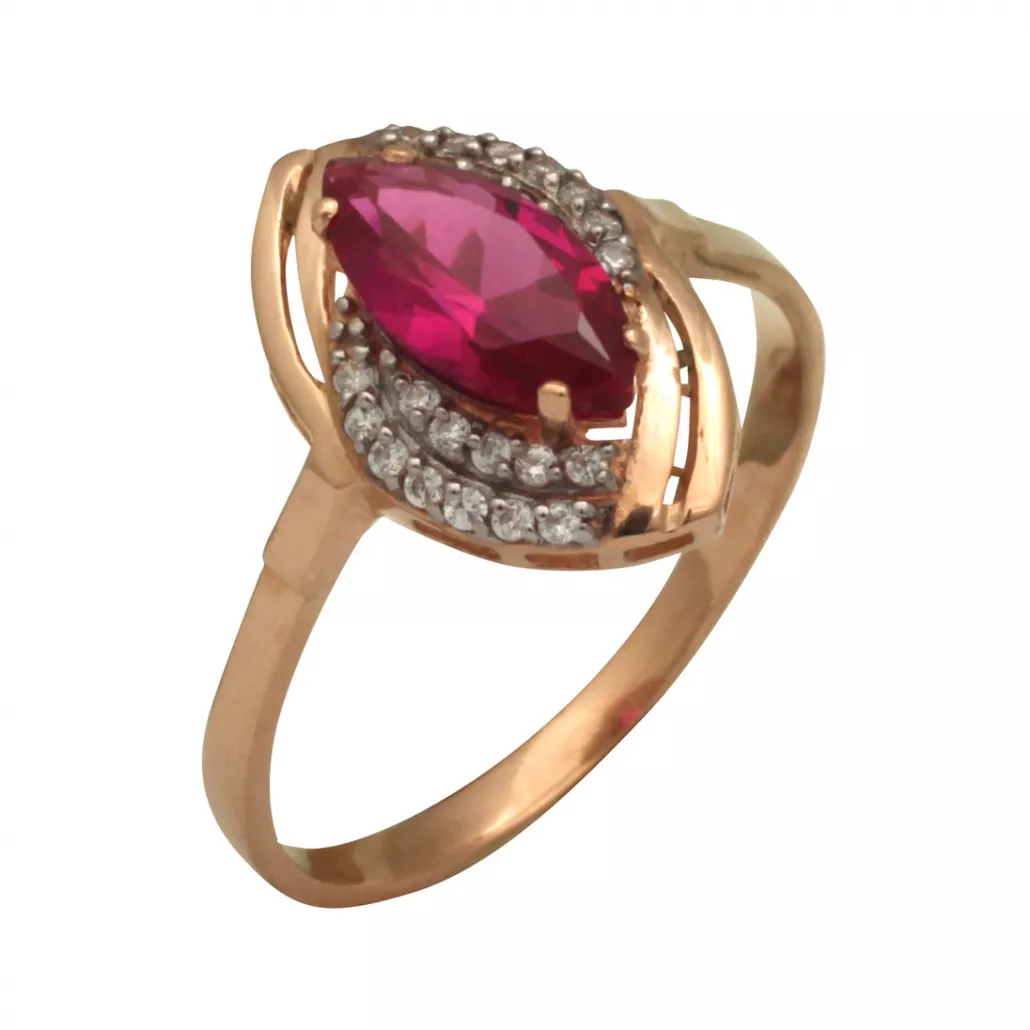 - Кольцо с фианитом и корундом из золота
