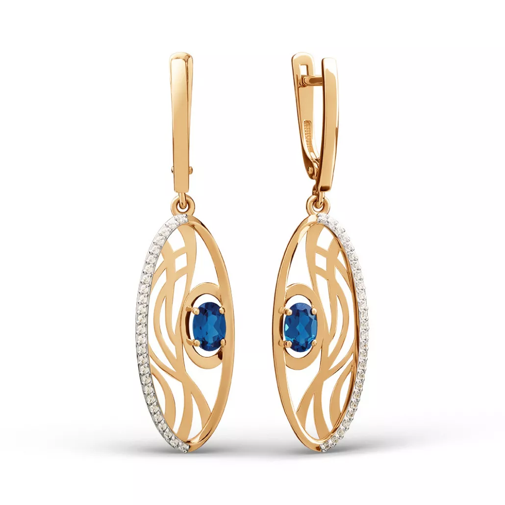 Серьги с топазом и фианитом из золота