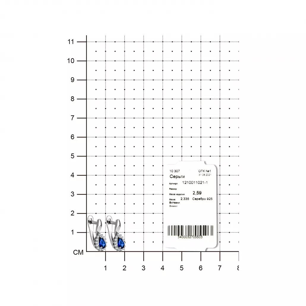 Серьги с фианитом из серебра Артикул: 1210011021-1