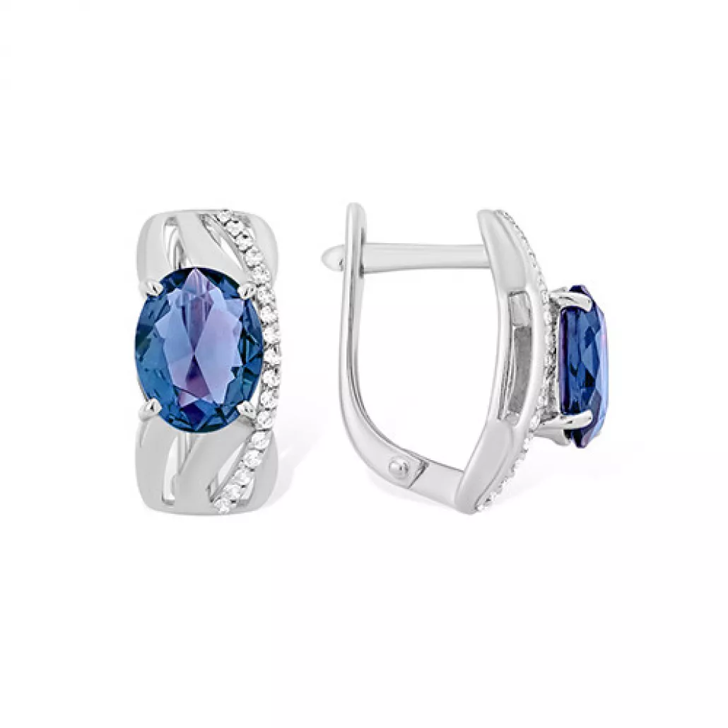 Серьги с топазом и фианитом из серебра